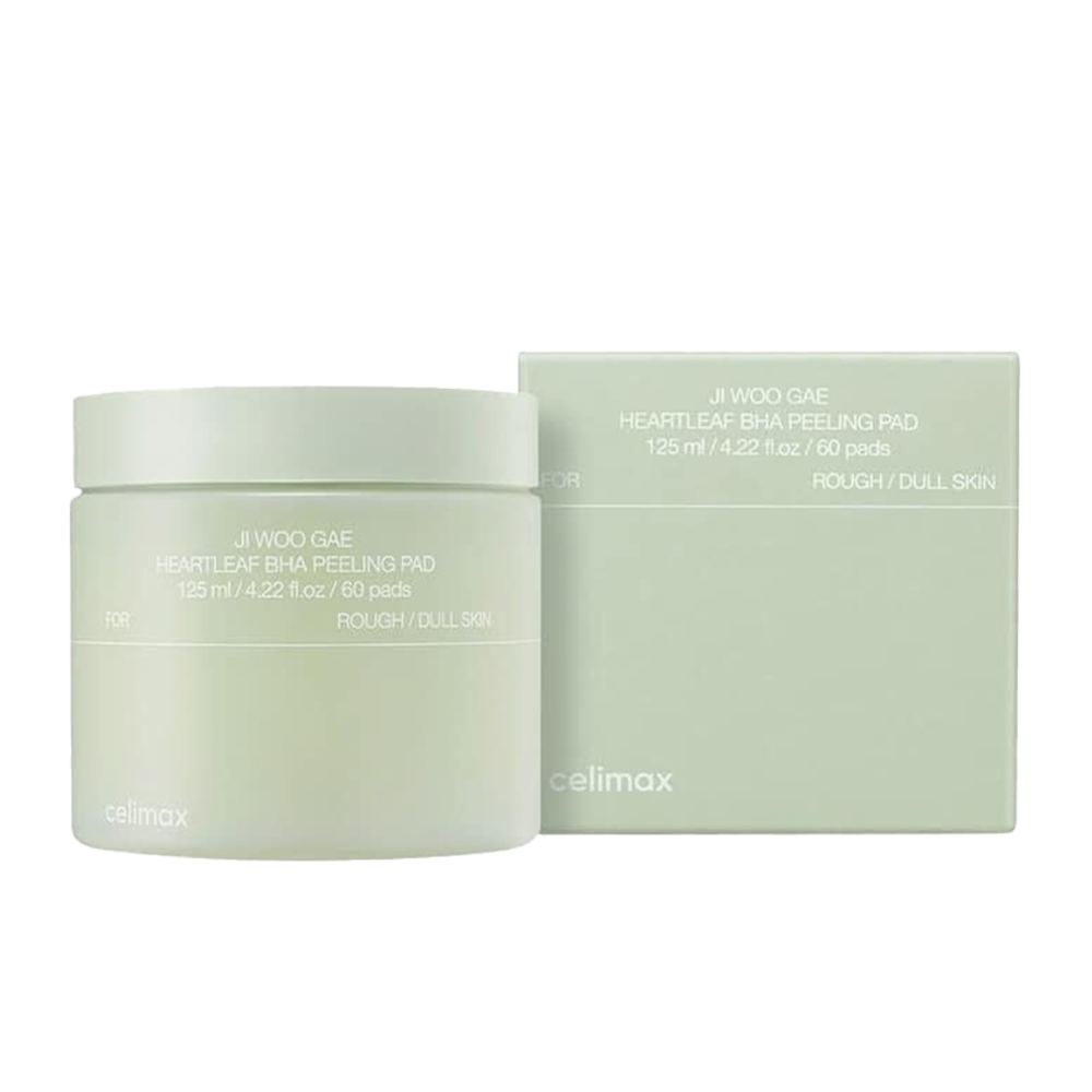 De Celimax JIWOOGAE Heartleaf Bha Peeling Pad One Step Original Pad are multitasking exfoliating pads. They are made with BHA to battle acne, regulate sebum and hyaluronic acid to also hydrate the skin. The pads calm and soothe the skin, since they also contain calming ingrients, while the active ingredients deeply penetrate into the skin to clean out unwanted gunk and prevent further skin problems. The pad has two sides. One side is smooth and hydrates while the other side is ribbed and exfoliates.