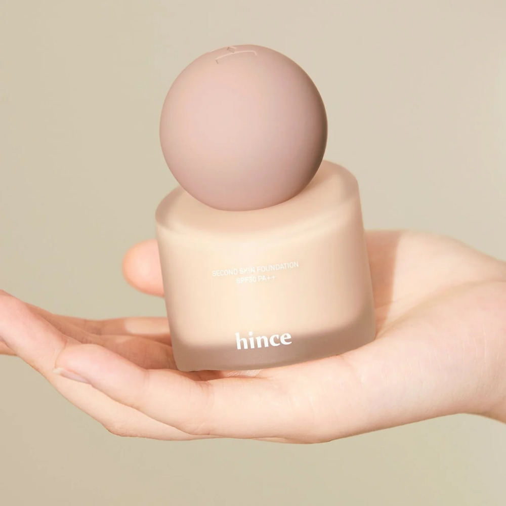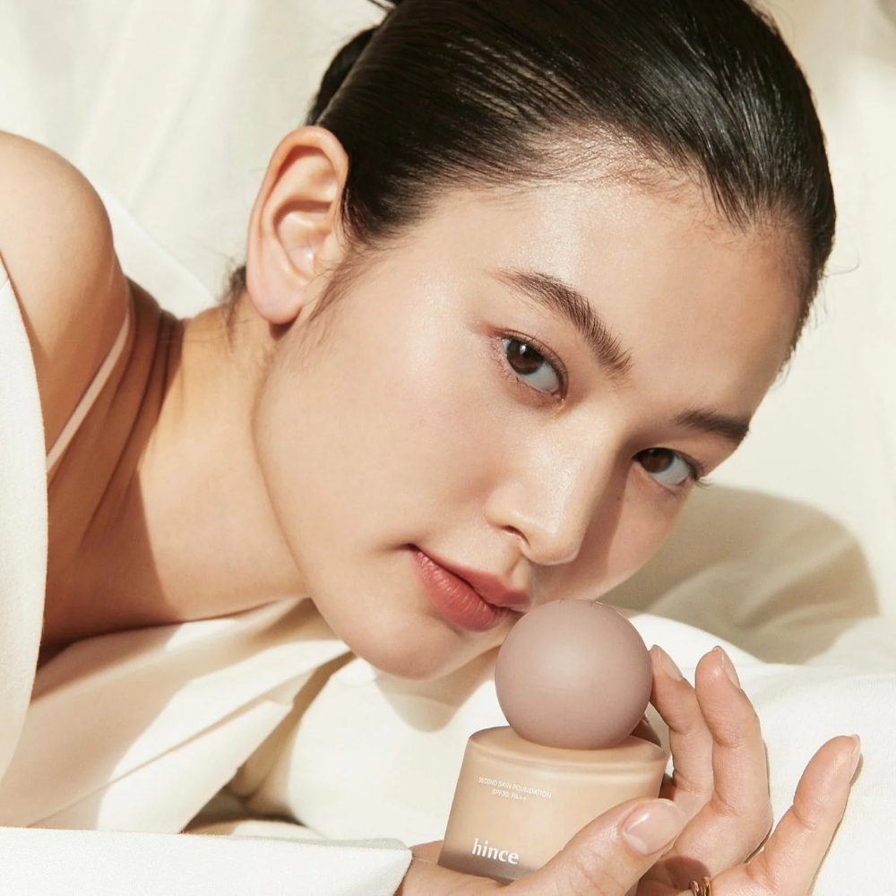 The hince Second Skin Foundation is a lightweight liquid foundation that evens out the skin tone and naturally conceals imperfections such as dark spots, redness, and uneven texture. Infused with amino acid–rich ingredients and fine coating powder, it delivers a smooth, breathable, semi-matte finish that feels like a second skin. The formula adheres thinly to the skin, blends effortlessly, and stays comfortable throughout the day without caking.
