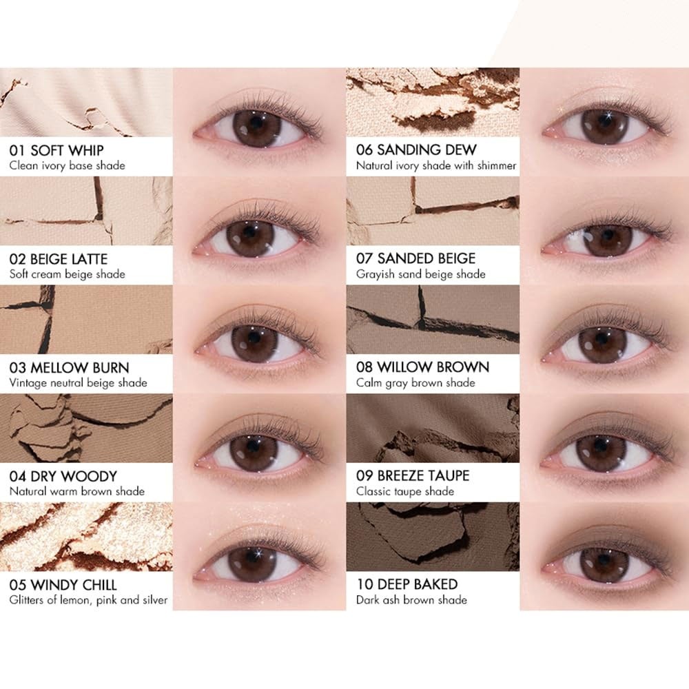 The Romand Better Than Palette combines highly pigmented shades with a silky-smooth formula that blends seamlessly. The mix of warm and cool nude tones allows you to create both subtle and dramatic looks. The delicate, refined glitters catch the light beautifully, adding a sunlit glow, while the matte shades offer elegant depth.