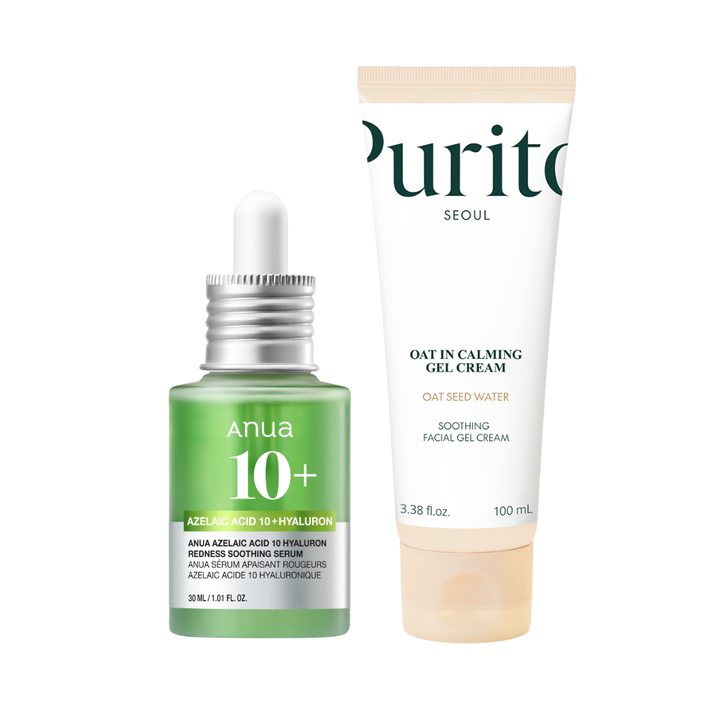 This soothing skincare duo is carefully designed for sensitive, redness-prone, or easily irritated skin. The Anua Azelaic Acid 10 Hyaluron Redness Soothing Serum helps reduce redness, refine skin texture, and rebalance the complexion. The Purito Oat-in Calming Gel Cream perfectly complements it by delivering immediate calming care and long-lasting hydration while supporting the skin barrier.