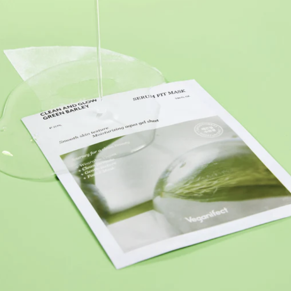 The Veganifect Clean And Glow Green Barley Serum Fit Mask is a mild, hypoallergenic sheet mask that deeply hydrates and soothes even sensitive skin. Read more