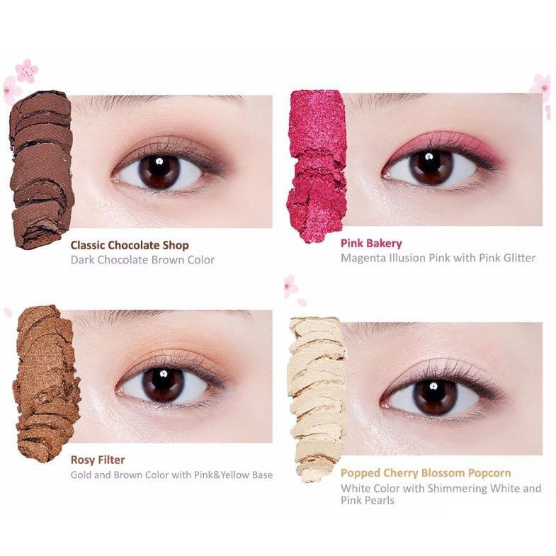 Etude House Play Color Eyes Cherry Blossom is a 10-shade palette inspired from spring's cherry blossoms to deliver various makeup looks with romantic and lovely colours and natural shade colours. The soft and silky texture makes application easy and lasts all day without cracking or settling into fine lines.