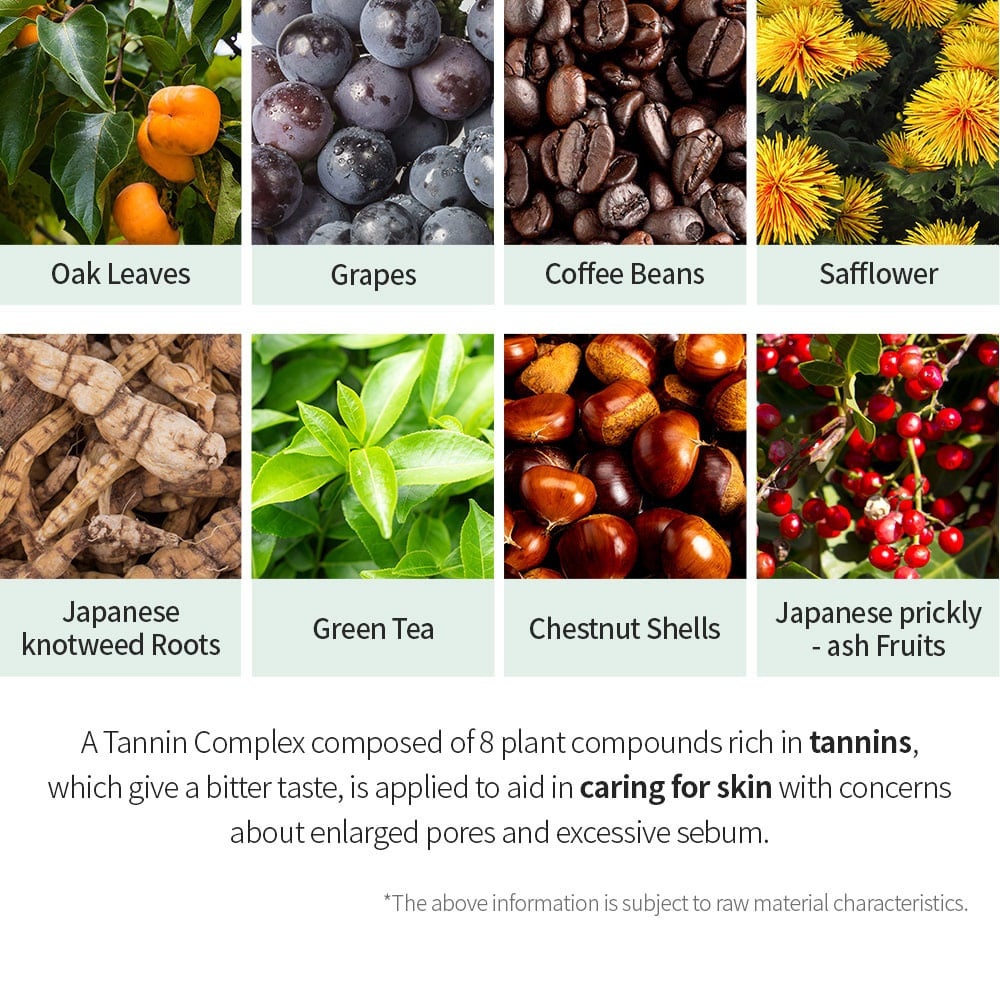 • Tannin Complex : affine les pores et contrôle le sébum pour une peau équilibrée.