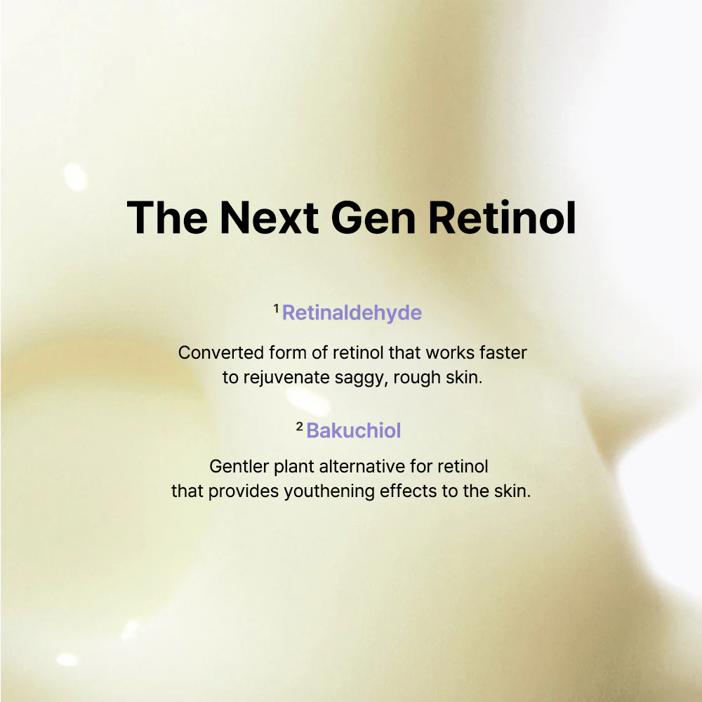 Water, Propylheptyl Caprylate, Tromethamine, C12-15 Alkyl Benzoate, Urea, Glycolic Acid, Lactic Acid, Niacinamide, Dipropylene Glycol, Cetearyl Alcohol, Glyceryl Stearate, PEG-100 Stearate, 1,2-Hexanediol, Cetearyl Glucoside, Sodium Polyacryloyldimethyl Taurate, Caprylic/Capric Triglyceride, Glycerin, Caprylyl Glycol, Polyacrylamide, Salicylic Acid, Sphingomonas Ferment Extract, C13-14 Isoalkane, Disodium EDTA, Bakuchiol, Ethylhexylglycerin, Xanthan Gum, Adenosine, Laureth-7, Retinal, Beta-Glucan, Tocopherol