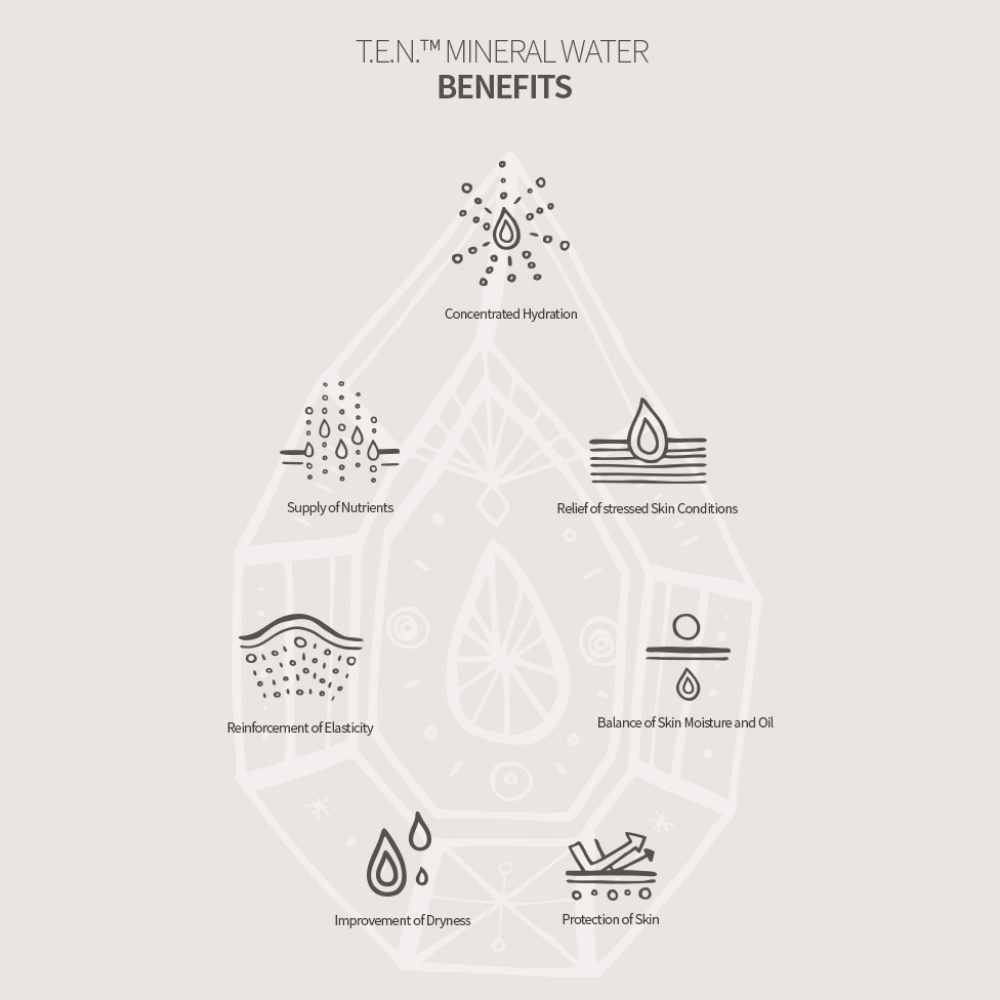 - T.E.N.™ Water: Apporte hydratation et minéraux essentiels.