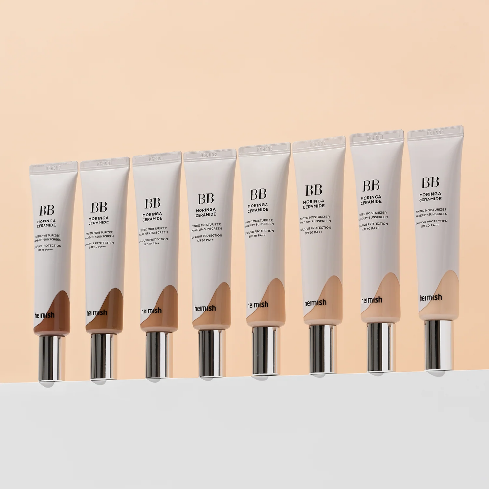 The Heimish Moringa Ceramide BB Cream is a tinted moisturizer that is a combination of cream, sunscreen and foundation. The formula with its soft texture makes it easy to apply over troubled skin and keeps the skin hydrated. This product is perfect for concealing redness and pigmentation while leaving a natural dewy finish.