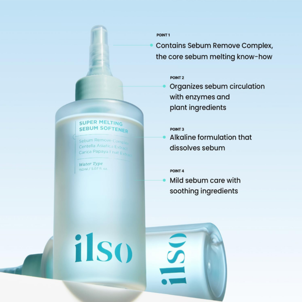 Ilso Super Melting Sebum Softener Set (+ Cotton Pad) est un peeling exfoliant conçu pour ramollir et dissoudre en douceur le sébum oxydé et les points noirs présents dans les pores. Sa formule fond les impuretés sans tirer ni presser la peau, permettant un nettoyage efficace et respectueux de la barrière cutanée.