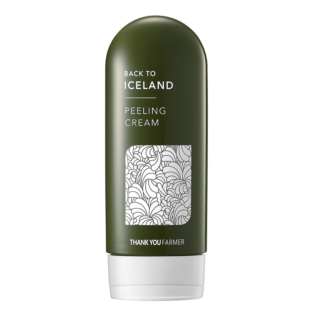 Thank You Farmer Back to Iceland Peeling Cream est une crème peeling enrichie en extrait de Cetraria lslandica pour éliminer les cellules mortes et les impuretés de la peau, BHA, PHA et Cellulose pour éliminer les déchets cutanés, et Oligo HA pour fournir une hydratation intense à la peau après l'exfoliation.
