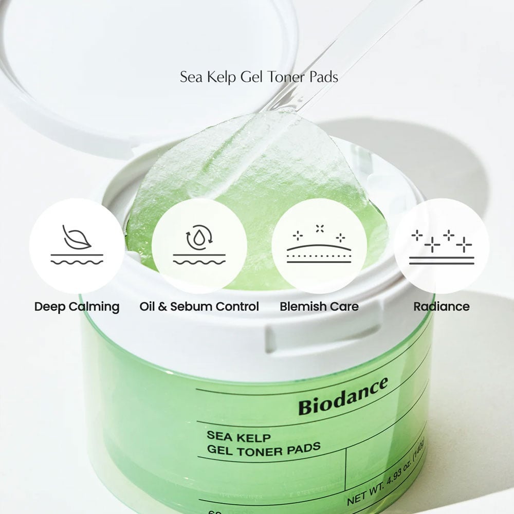 I Sea Kelp Gel Toner Pads sono una soluzione fresca e pratica per pelle grassa, acneica o irritata. Ottimi come tonico o trattamento lenitivo veloce — come una maschera all’alga kelp, ma più semplice e veloce da usare.