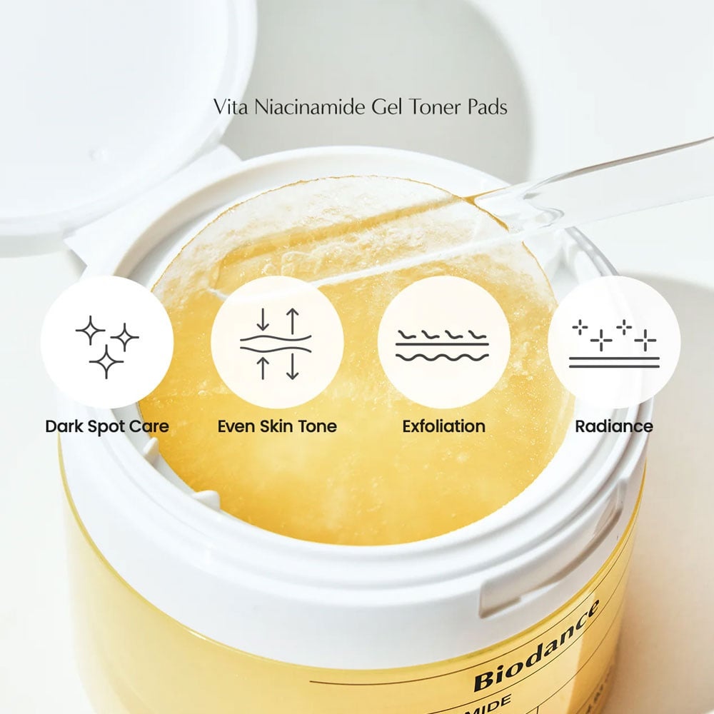I Vita Niacinamide Gel Toner Pads sono una soluzione comoda ed efficace per una pelle più luminosa e uniforme ogni giorno. Possono essere usati come tonico o mini-maschera per un boost immediato di idratazione e glow — leggeri, assorbenti e senza irritazioni.