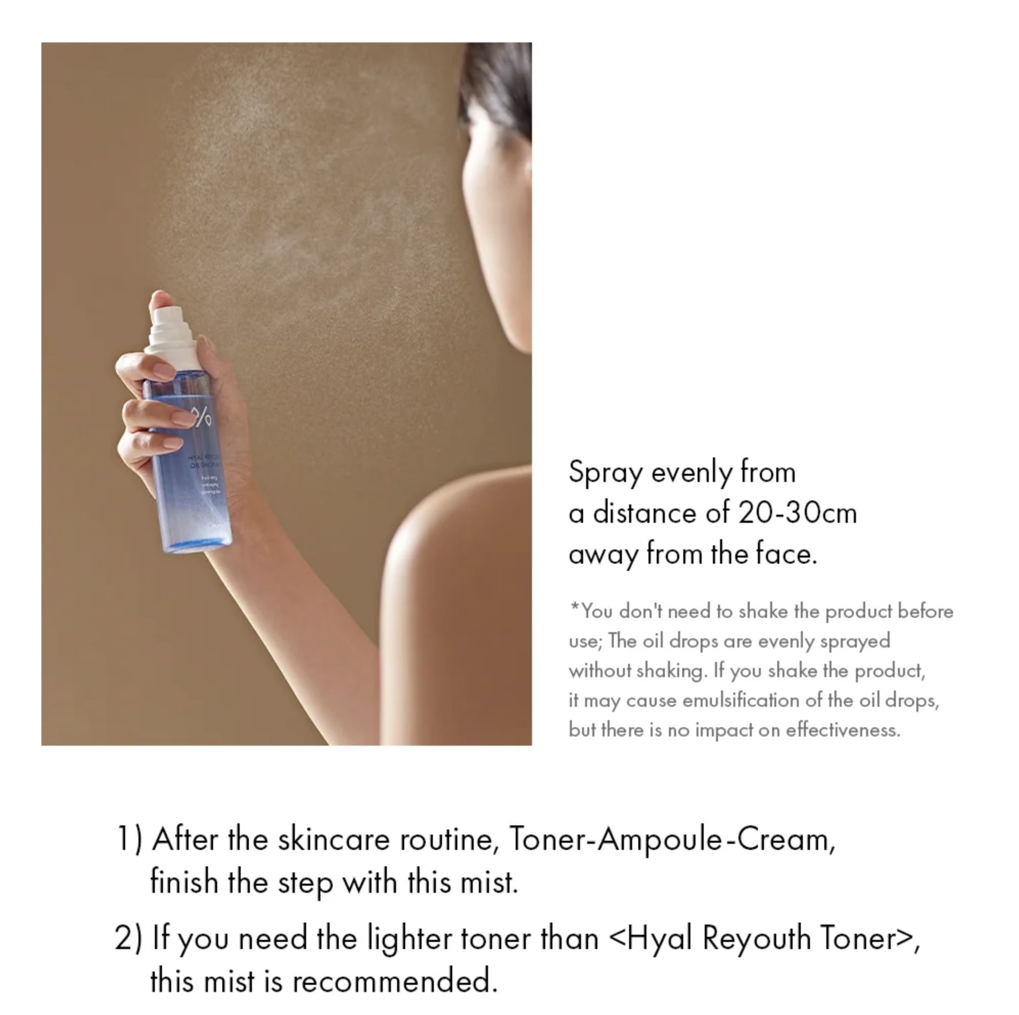 Il Dr. Ceuracle Hyal Reyouth Oil Drop Mist è una rinfrescante nebbia che fornisce un'intensa idratazione e ripristina l'elasticità della pelle, grazie alla sua formula innovativa con estratto di canna da zucchero e squalane di origine vegetale. Arricchito con pantenolo e fruttano, forma una robusta barriera di umidità sulla superficie della pelle per prevenire la disidratazione e migliorare l'elasticità. Questa nebbia garantisce un'assorbimento ottimale dei fattori idratanti, lasciando la pelle fresca e idratata.