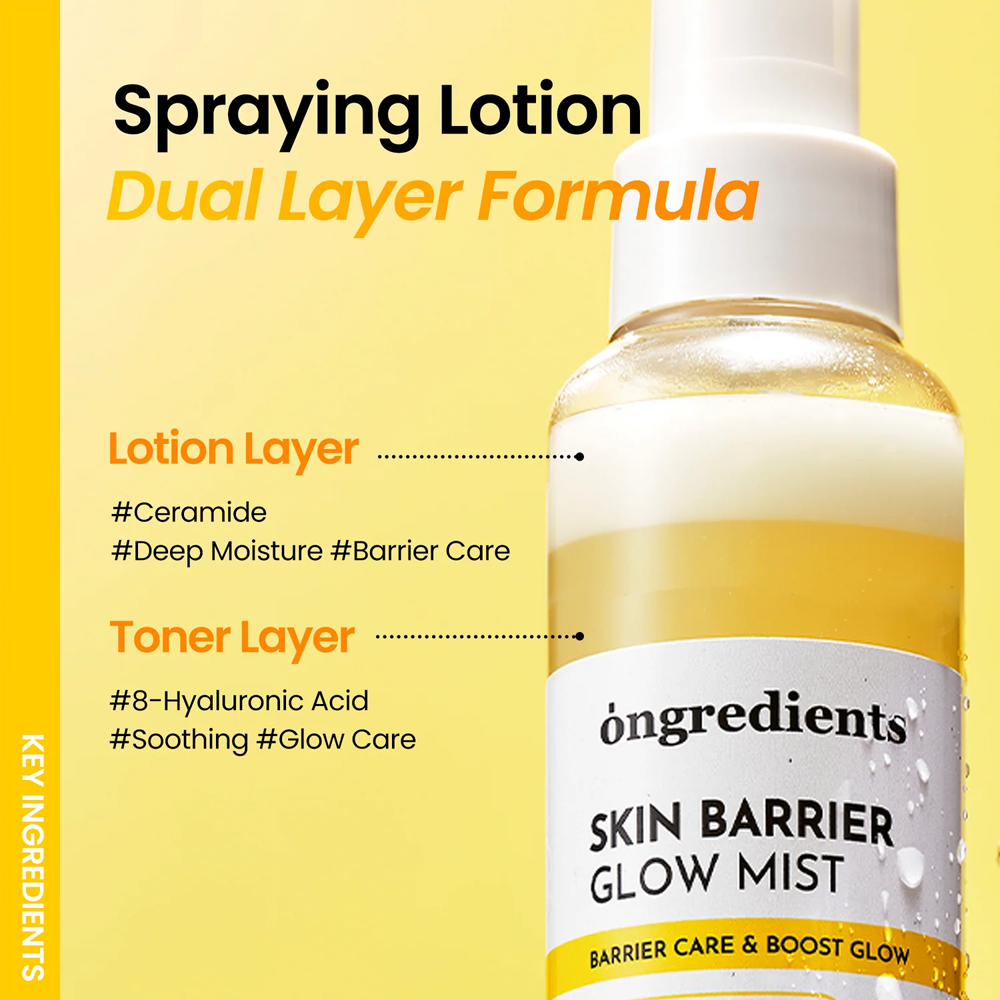 La Ongredients Skin Barrier Glow Mist è una mist viso idratante con Acido Ialuronico e Ceramidi che rinfresca la pelle, offre un’idratazione intensa e rafforza la barriera cutanea per un effetto glow sano.