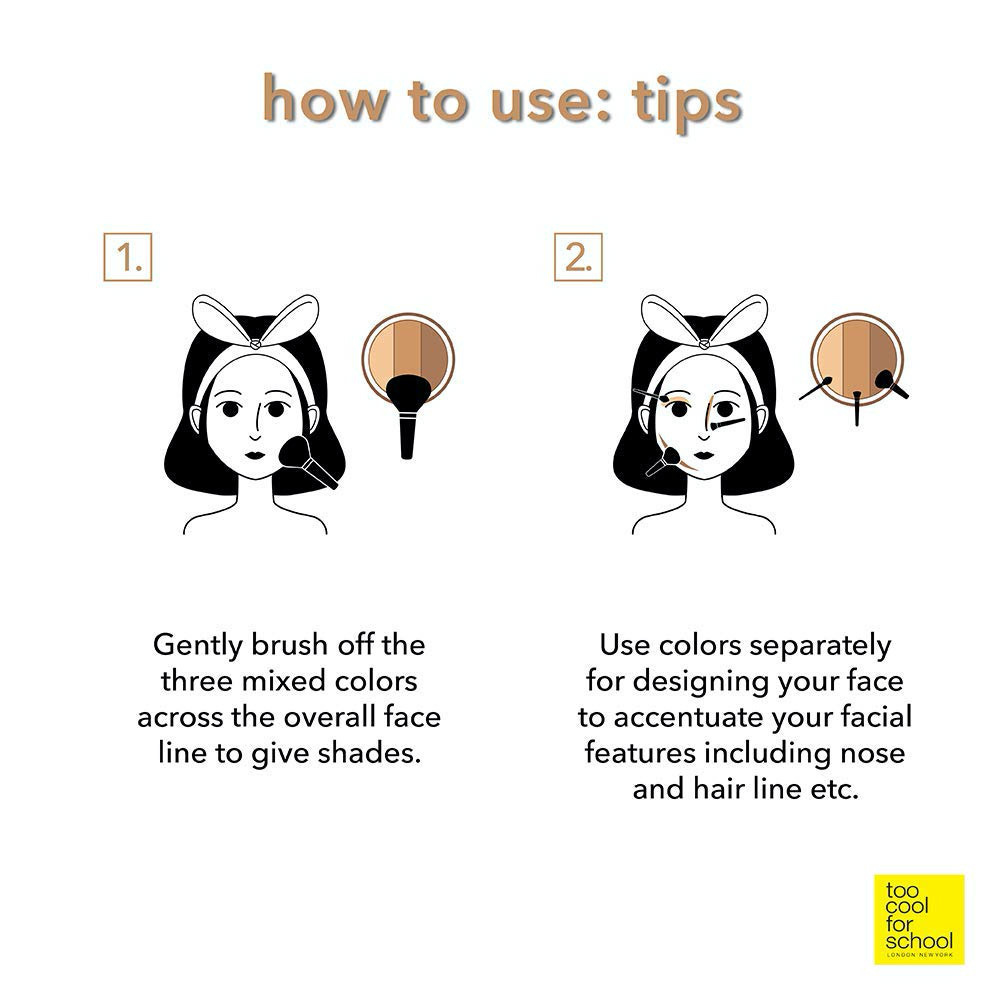 Too Cool For School Art Class by Rodin Shading for a naturally contoured look with three skin-blending shade blocks in a handy compact with a mirror. It features three blendable shades, which can be blended all together with a contouring brush or used individually for different areas of face depending on your skin and complexions color. Fine powder blends into face seamlessly with soft matte finish and effortless blend ability.